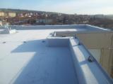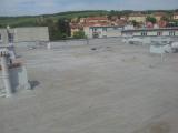 Oprava střešního pláště fólií DEKPLAN tl. 1,5 mm se zateplením tl. 230 mm (EPS 70 S tl. 130 mm a EPS 100 S tl. 100 mm). Součástí opravy je zateplení a přespádování atik, dodávka a montáž ventilačních turbín LOMANCO BIB 14, nový střešní výlez a hromosvod. Klempířské prvky provedeny z poplastovanoho plechu VIPLANYL.
