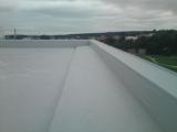 Kompletní demontáž stávajícího střešního pláště včetně jeho likvidace. Vyrovnání stropní konstrukce, nadezdivka atiky a provedení parotěsné zábrany z asfaltového pásu DEKGLASS G200 S40. Pokládka nového střešního pláště z PVC izolace DEKPLAN tl. 1,5 mm s geotextílií FILTEK 300 g/m2 včetně zateplení pěnovým polystyrenem EPS 100 S. Součástí rekonstrukce střešního pláště byla i výměna stávajících VZT zařízení za samoodtahové ventilační turbíny LOMANCO BIB 14.