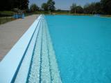 Provedení vyložení bazénové fólie ALKORLAN 35066 barva Adria tl. 1,5 mm vč. podkladní geotextílie FILTEK 500 g/m2 pro bazény. Součástí dodávky bylo opracování bazénového schodiště v systémů fólie PVC a napouštěcích trysek.