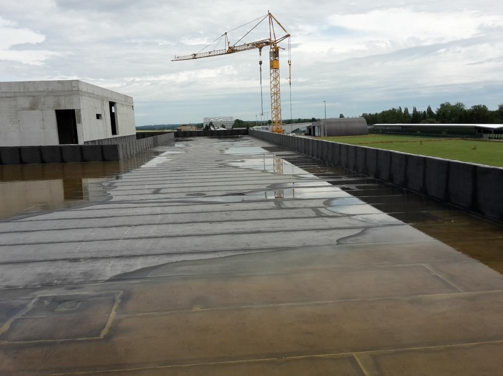 Provedení parotěsné zábrany penetrací Penetral Alp a asfaltovými pásy Glastek AL 40 Mineral. Pokládka tepelné izolace z pěnového polystyrenu EPS 150 S tl. a spádových klínů EPS. Pokládka separační vrstvy z polypropylenových vláken FILTEK 300 g/m2 a provedení povlakové izolace z PVC fólie DEKPLAN 76 tl. 1,5 mm. Stabilizace střešního pláště kotvením šrouby GBST s Teleskopy do stropní železobetonové konstrukce. Provedení klempířských prvků z plechu Viplanyl.