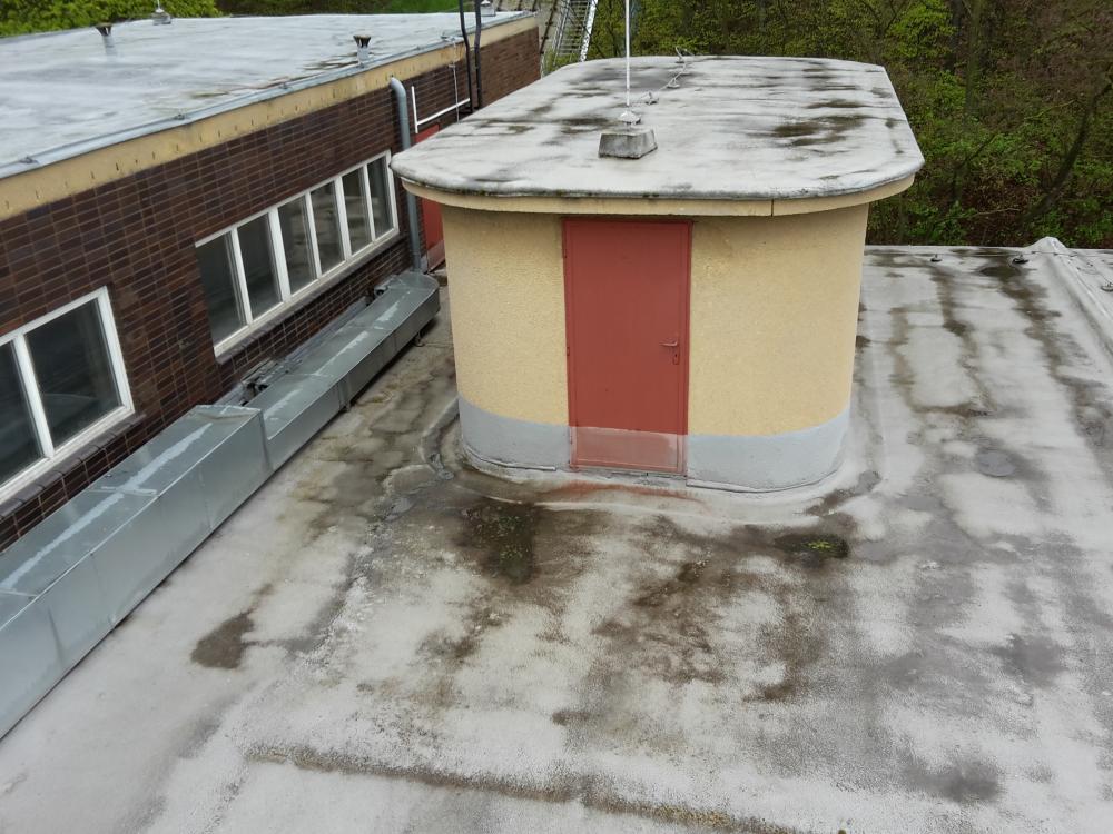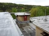 Rekonstrukce ploché střechy - odstranění degradované vrstvy PUR pěny včetně stávající hydrizoizolace. Provedení parotěsné zábrany penetrací Dekprimer a asfaltovými pásy Glastek AL 40 Mineral. Pokládka tepelné izolace z pěnového polystyrenu EPS 100 S tl. 200 mm. Pokládka separační vrstvy z polypropylenových vláken Geotek N 300 g/m2 a provedení povlakové izolace z PVC fólie DEKPLAN 76 tl. 1,5 mm. Stabilizace střešního pláště kotvením šrouby GBST s Teleskopy do stropní železobetonové konstrukce. Provedení klempířských prvků z plechu Viplanyl.