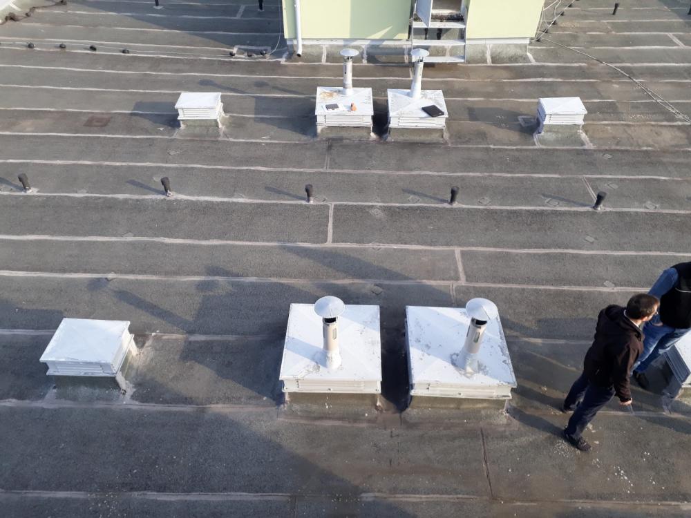 Rekonstrukce ploché střechy - pokládka EPS 100S tl. ve dvou vrstvách 70 mm a 80 mm (s překrytím spar) na stávající hydroizolaci. Pokládka separační vrstvy ze skelné textílie Vlies 120 g/m2 a provedení povlakové izolace z PVC fólie DEKPLAN 76 tl. 1,5 mm. Stabilizace střešního pláště kotvením šrouby GBST s Teleskopy do stávající stropní železobetonové konstrukce. Provedení klempířských prvků z plechu Viplanyl a Titanzinek.